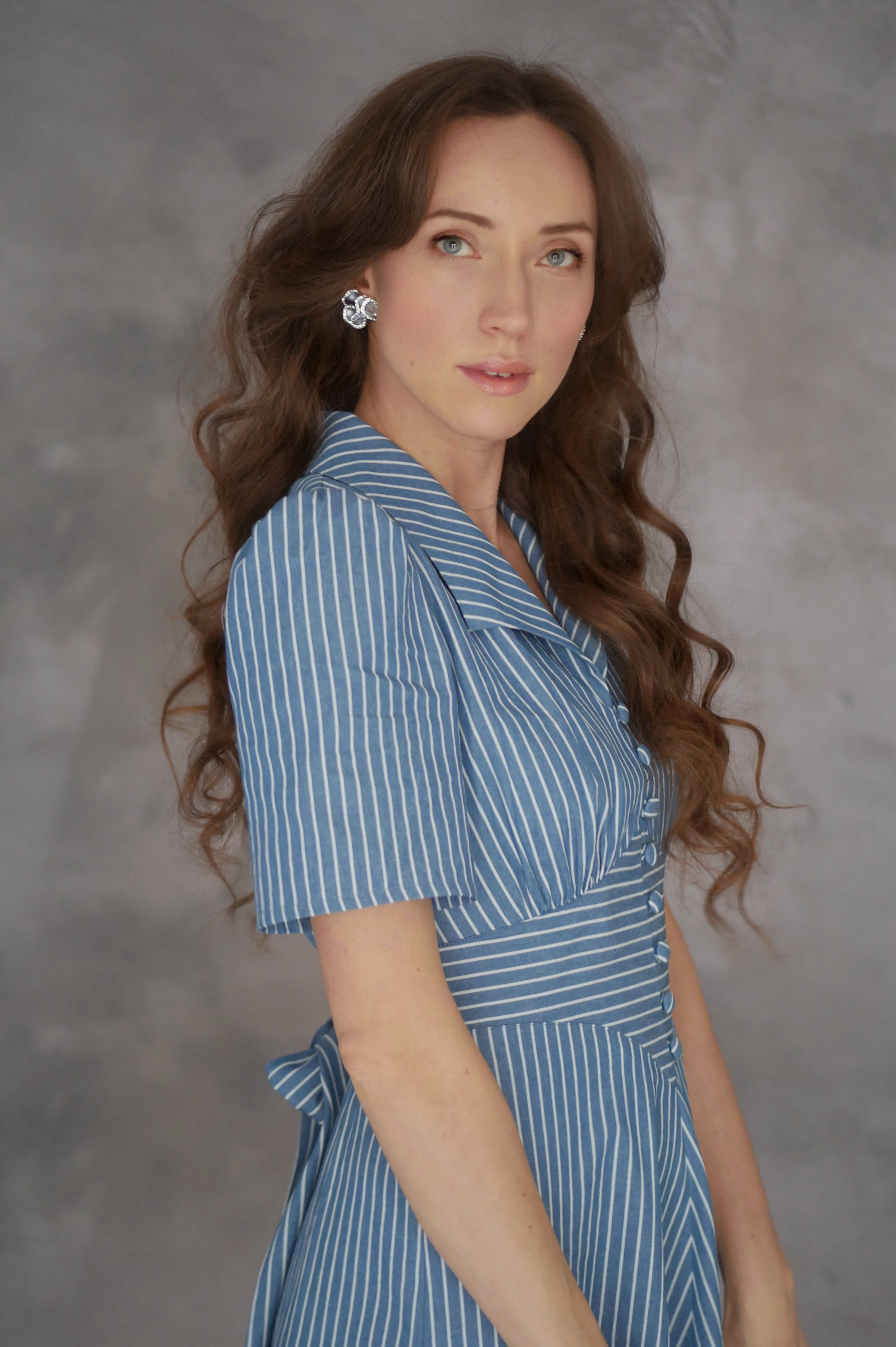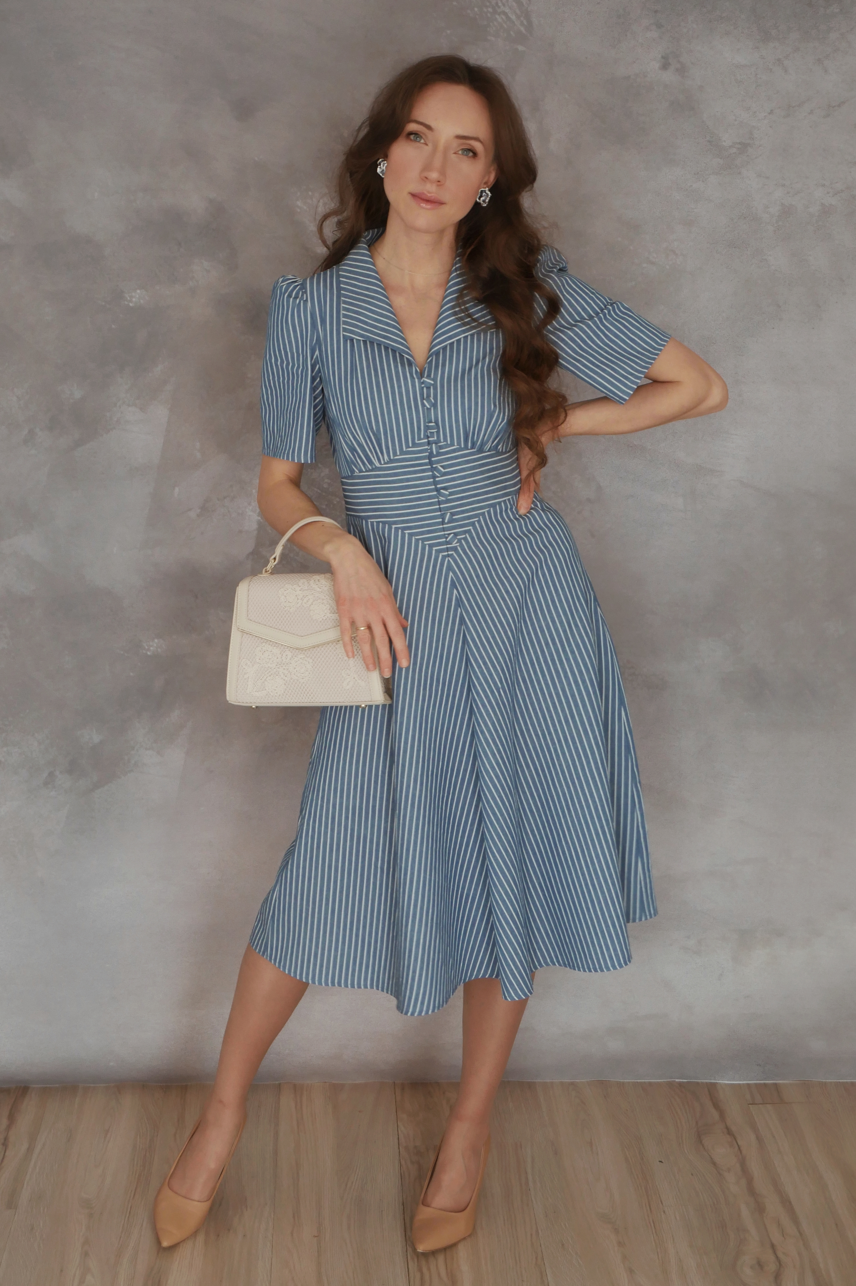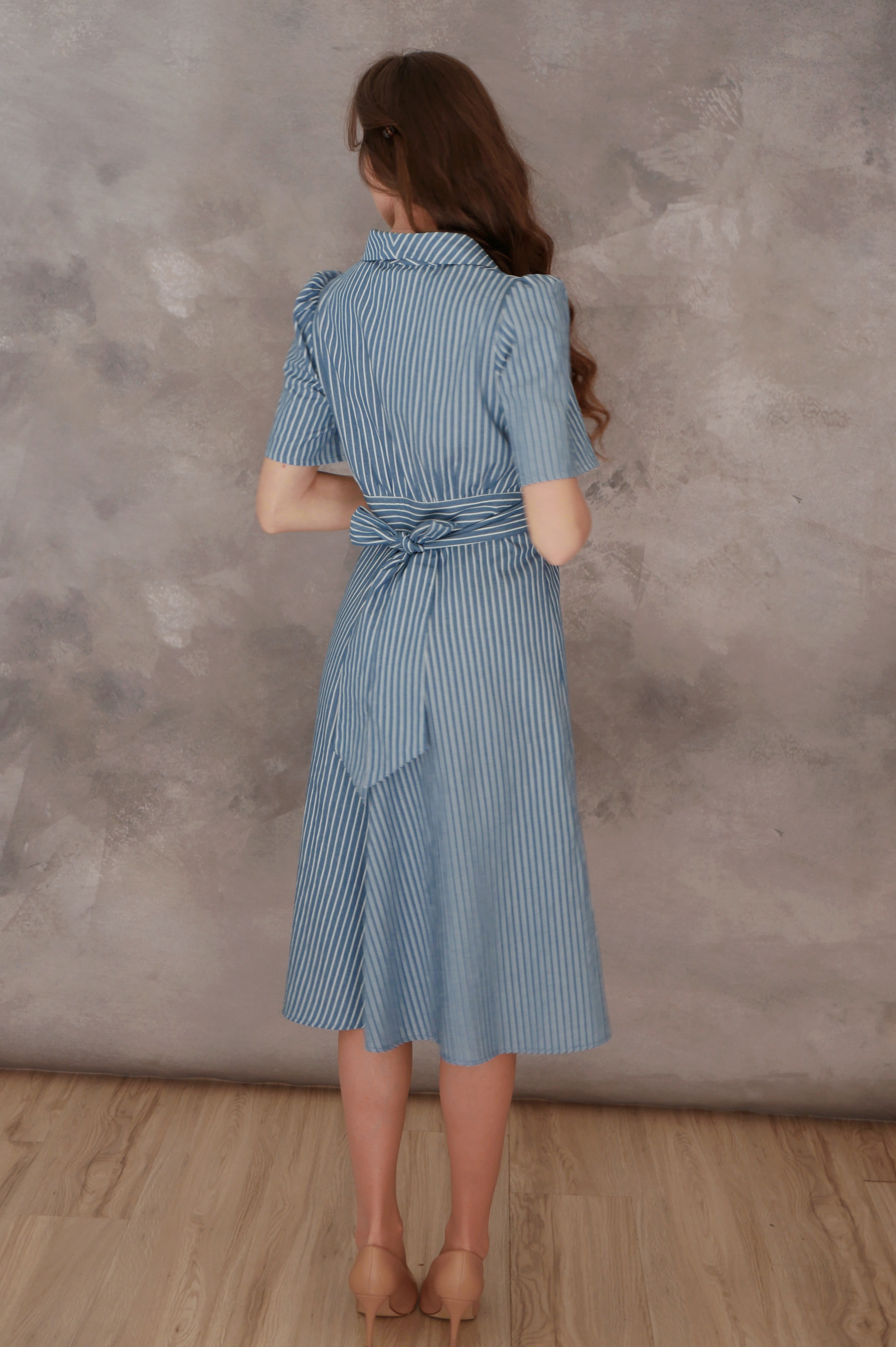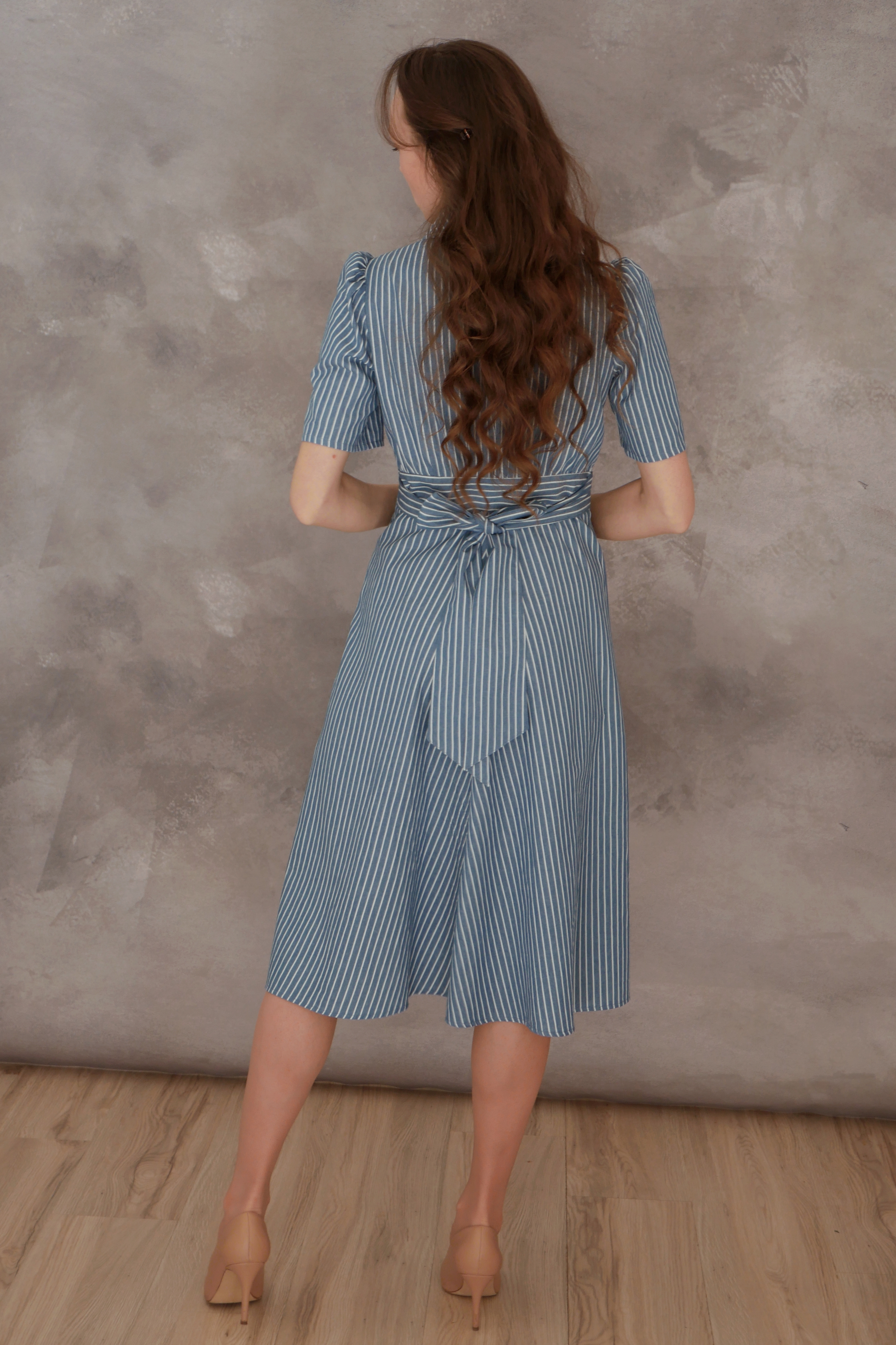 Sukienka ESTERA niebieska w biały prążek, bawełniana.